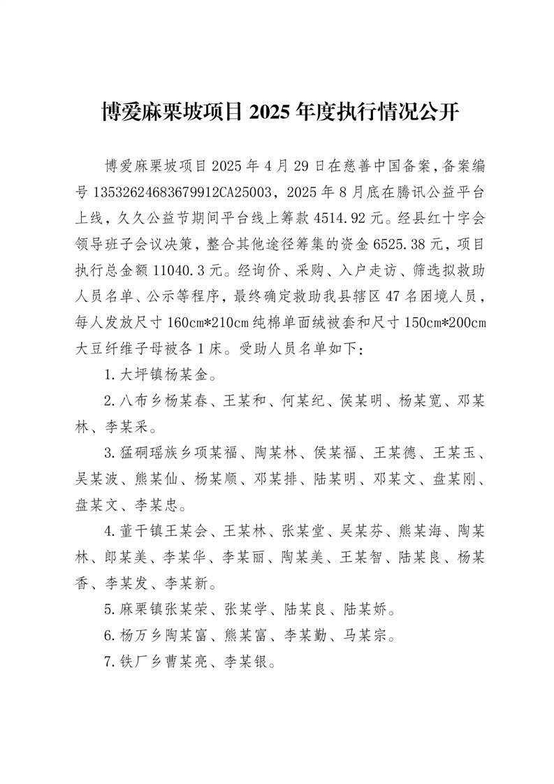 博爱麻栗坡项目2025年度执行情况公开