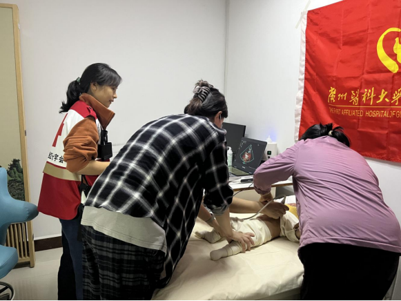 在筛查现场,广州医科大学附属第一医院医师团队和妇幼保健院内科医生细致认真做好听诊、B超检查等诊疗服务,市红十字志愿者们积极参与现场引导服务、公益宣传等工作,确保筛查活动井然有序开展。