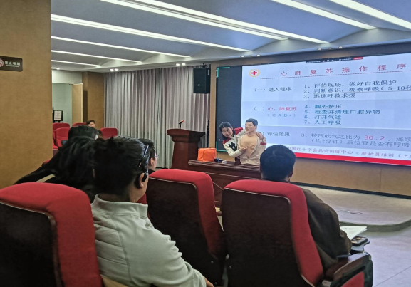 本次培训采用“理论讲解+实操演练”相结合模式。培训中,讲师结合真实案例,生动详实地介绍了心肺复苏(CPR)、自动体外除颤器(AED)使用方法以及常见意外伤害的应急处理技巧,重点阐释了“黄金四分钟”在心搏骤停救援中的关键意义。实操环节,通过手把手指导,及时纠正学员操作细节,确保每位参与者准确掌握技术要领。参训学员表示,本次学习,基本掌握了急救、自救与互救的基础技能,应对突发事件和意外伤害自救意识与处置能力得到切实提升。此次培训共吸引线上线下学员300余人参与。