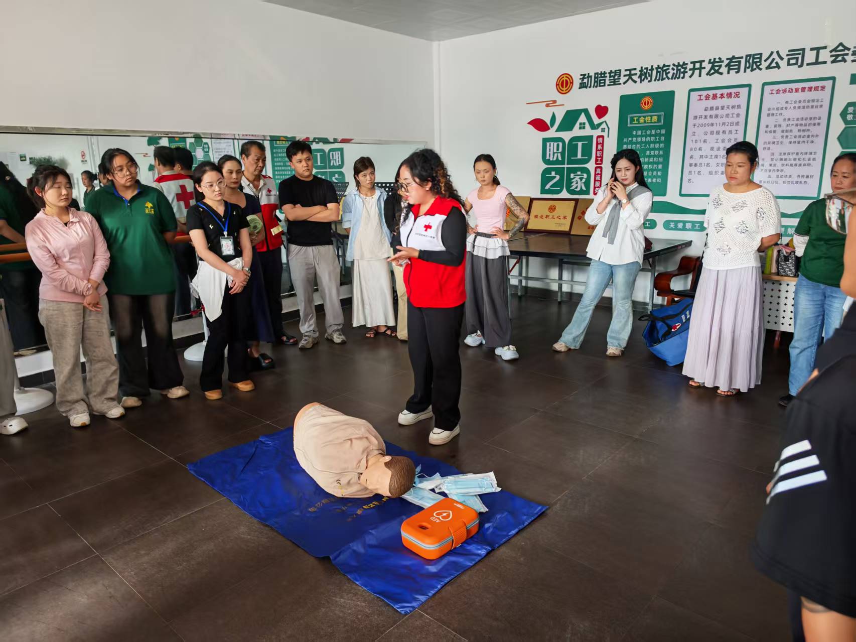 为进一步提高景区应急救护能力,保护游客和员工生命安全,大力普及宣传防灾减灾与应急救护知识。2025年10月13日,勐腊县红十字会对望天树景区旅游有限公司景区128名工作人员开展红十字救护员培训。培训结合旅游景区常见突发情况,讲解了各种紧急事故救助救护的基本知识和心肺复苏施救过程中的技术要点。并以仿真人体模型等教学模具,为学员进行创伤救护、意外伤害现场救护、伤口包扎等技能操作。同时,利用现场问答形式,传授救护知识以及救护现场的注意事项。