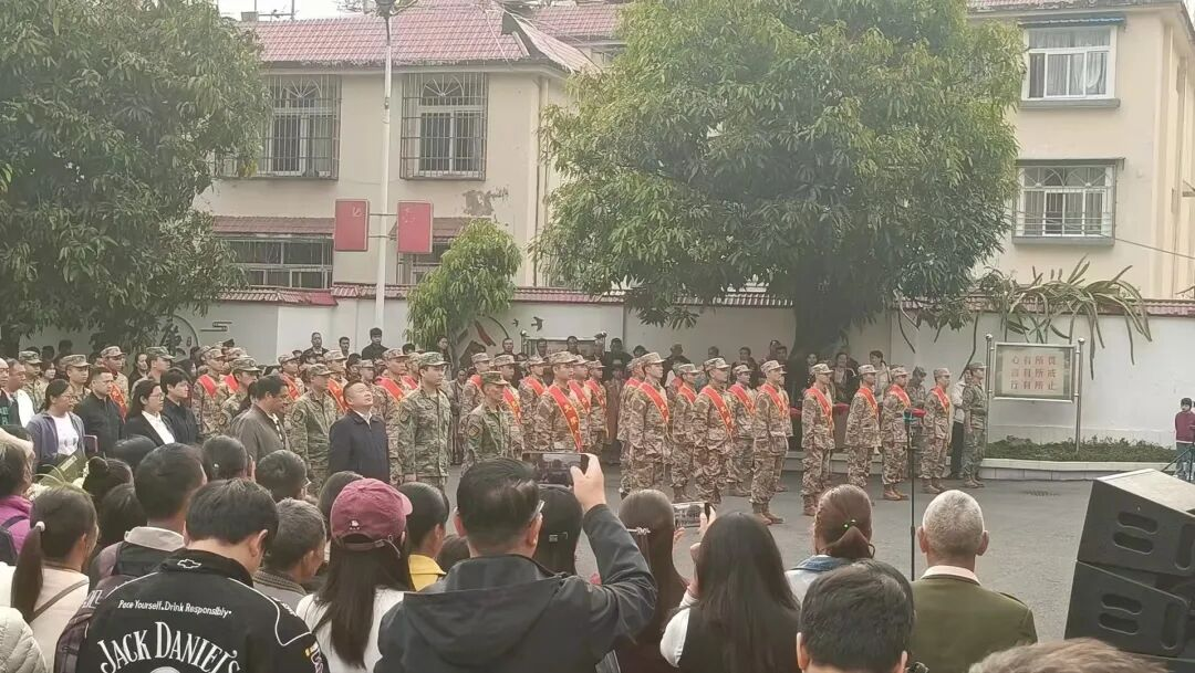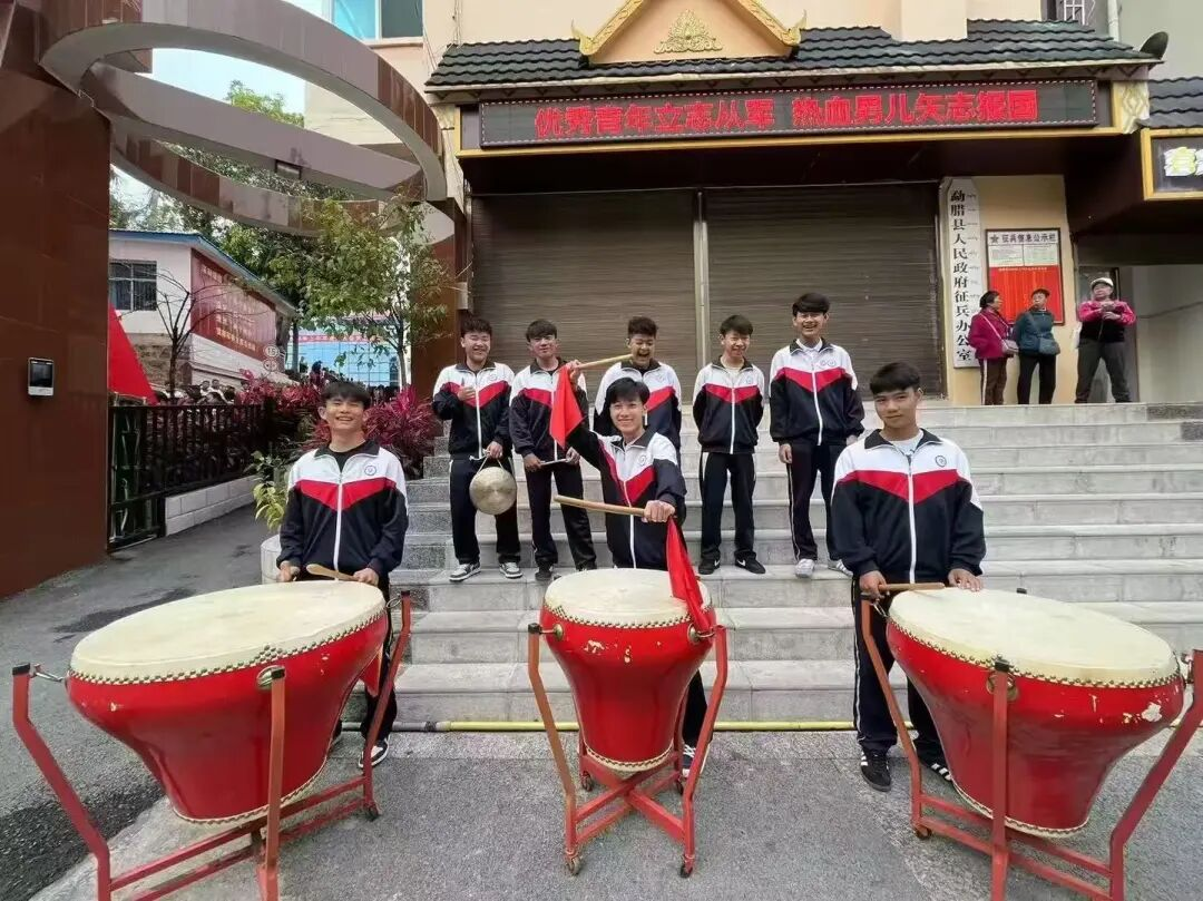 春日渐暖,旭日初升,三月风光正好。勐腊县武装部军歌嘹亮、锣鼓喧天,2026年春季新兵入伍欢送仪式在此隆重举行。人群中,勐腊县第一中学(安宁中学勐腊学校)高一年级393班的43名学子身着校服,格外醒目。他们受学校委派前来,将以热烈的掌声与专注的目光,为即将奔赴军营、守卫祖国的新兵哥哥壮行。