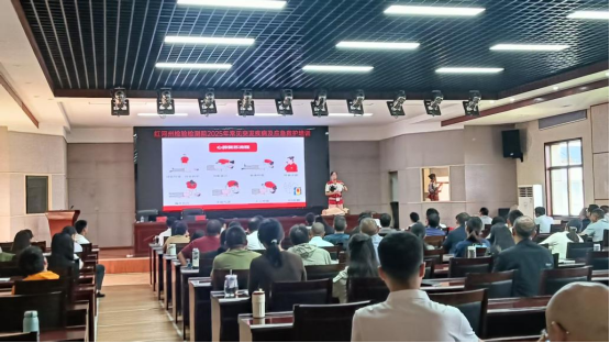应急救护知识进机关。9月1日下午,蒙自市红十字会应红河州检验检测院邀请,到该单位开展了一场别开生面的应急救护知识培训,160名干部职工积极参加。培训中,红十字会培训老师结合日常生活和工作中可能遇到的突发状况,深入浅出地讲解了新救护概论、心肺复苏、AED和气道异物梗阻等应急救护知识,现场演示了徒手心肺复苏、AED使用和气道异物梗阻的自救互救技能,并邀请干部职工亲自实操体验,确保每位学员都能掌握急救技能的要领。