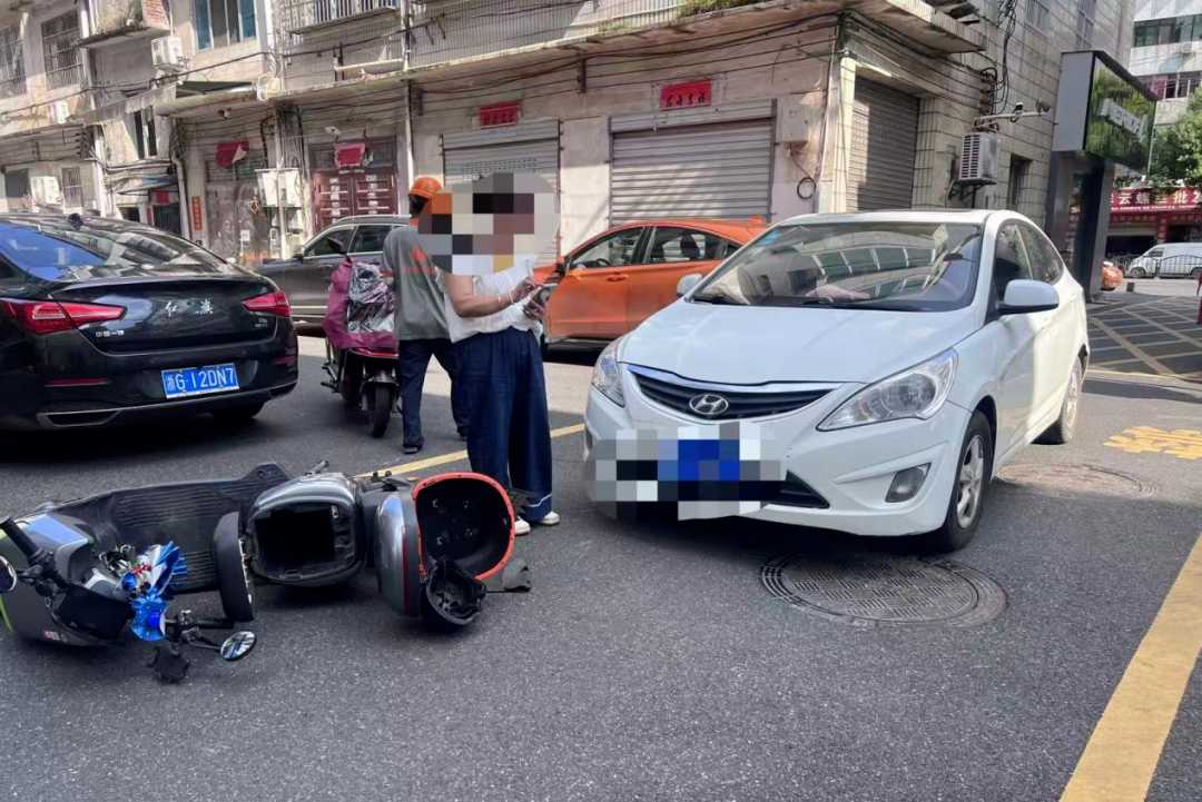 9月14日下午,在武义县北岭四路与玉泉街交叉口发生一起交通事故,一辆汽车与电动自行车发生碰撞,电动自行车驾驶员受伤。