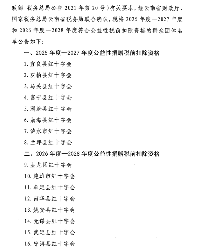 南华县红十字会2026年度一2028年度公益性捐赠税前扣除资格