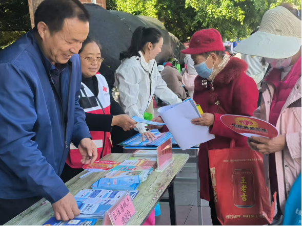 禄丰市红十字会联合市委社会工作部、团市委、市残联及部分医疗单位,以“汇聚志愿力量 共建美好社会”为主题,在西门社区开展志愿服务活动,用实际行动传递温暖、践行使命。活动当天,志愿者们为居民提供了免费健康体检、血压血糖检测、慢性病咨询等服务,同时现场演示心肺复苏、海姆立克急救法等实用技能,并发放急救宣传资料100余份。活动还特别针对老年群体开展了防诈骗及养老政策宣传,以实际行动传递温暖、服务社区。