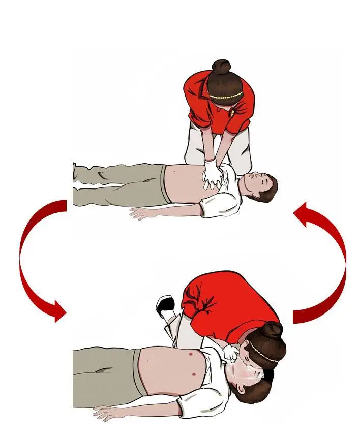 如此反复操作,直至患者恢复心搏和自主呼吸,或者专业急救人员到达。