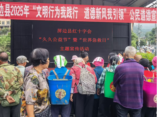 为深入贯彻落实习近平总书记关于红十字事业重要指示精神,进一步弘扬“人道、博爱、奉献”的红十字精神,屏边县红十字会于2025年9月14日利用群众赶街日,积极组织开展“久久公益节”暨“世界急救日”宣传活动,吸引众多群众参与,取得良好的社会效果。