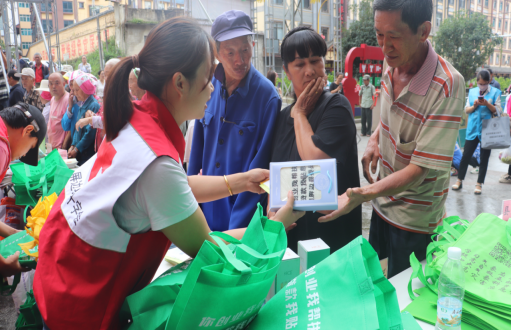 活动现场,工作人员和志愿者通过设立咨询台、摆放宣传展板、发放宣传资料等形式向群众发放应急救知识宣传册等。