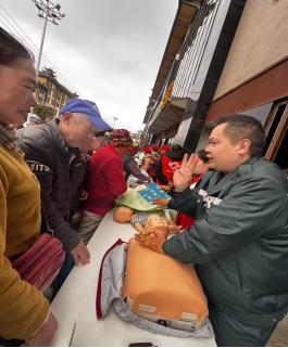志愿者们利用模拟人教具进行现场示范,通过直观的操作,让人民群众快速掌握急救方法,切实增强自救互救能力。