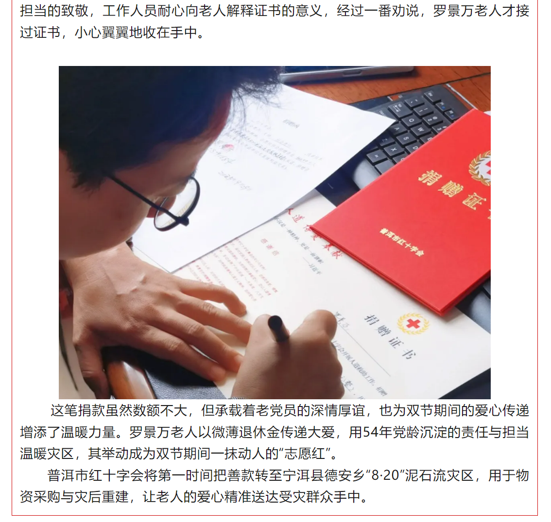 54年党龄老党员罗景万:捐出300元退休金,情系宁洱泥石流灾区