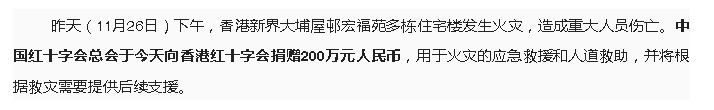 中国红十字会捐赠200万元支持香港重大火灾救援行动