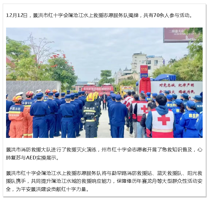 景洪市红十字会澜沧江水上救援志愿服务队揭牌
