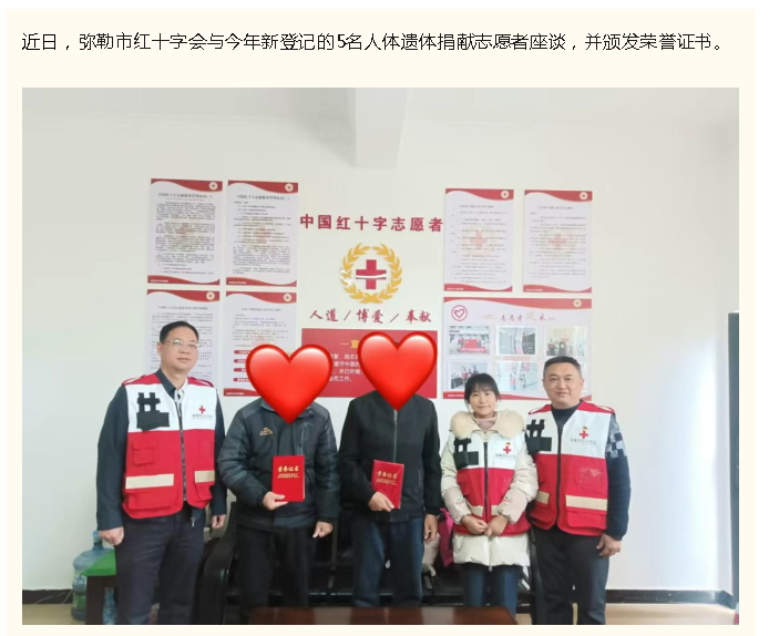 弥勒市红十字会与遗体和人体器官捐献志愿者开展座谈