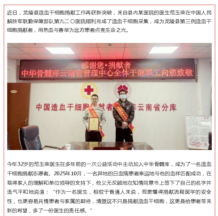 热血传大爱 生命再续航——龙陵县成功完成第三例造血干细胞捐献