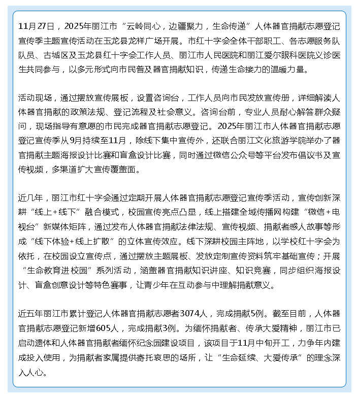 器官捐献,生命永续——丽江市开展人体器官捐献主题宣传活动