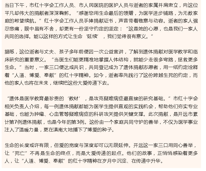 遗体捐献助力医学发展 开远市一家三口用同心善举传递博爱