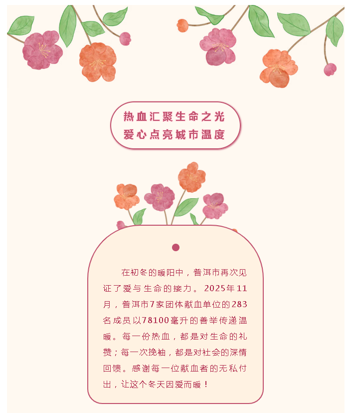献血致谢 | 每一滴都值得铭记!普洱7家团体献血单位共献血78100毫升!