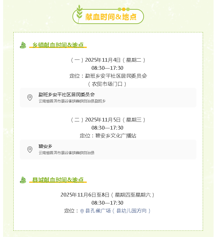 献血指引 | 11月4日 —— 11月8日景谷县开展无偿献血活动