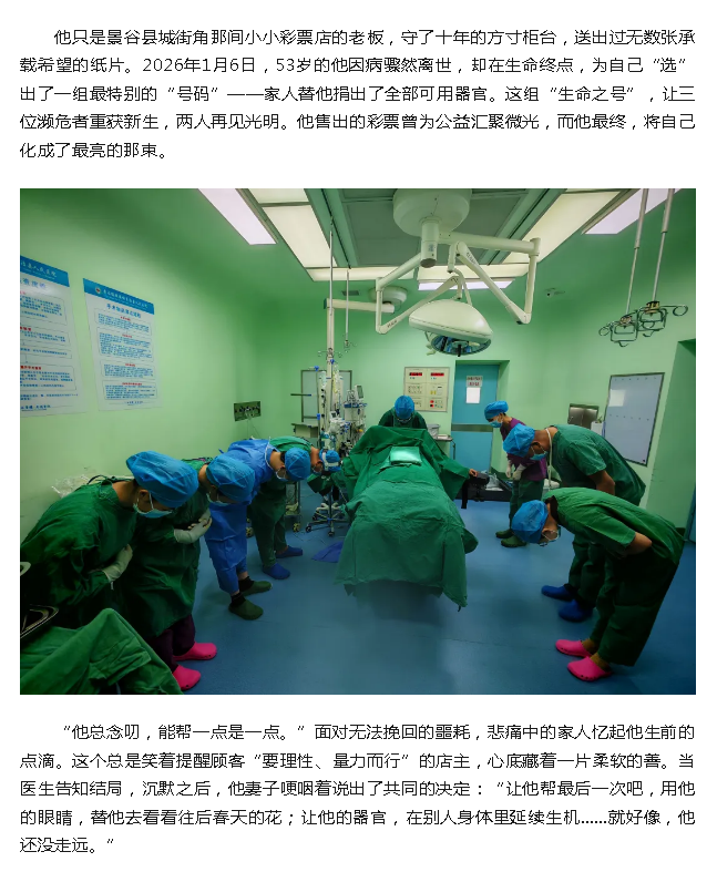 【善行义举】生命最后的“公益号码”——一位彩票店主,让五份希望在泪光中延续