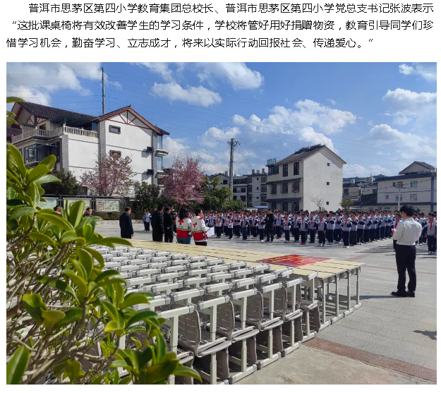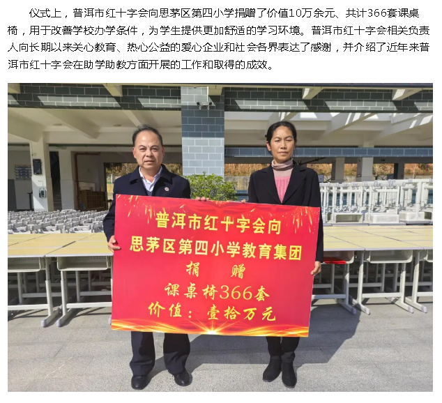 普洱市红十字会向思茅区第四小学捐赠爱心桌椅