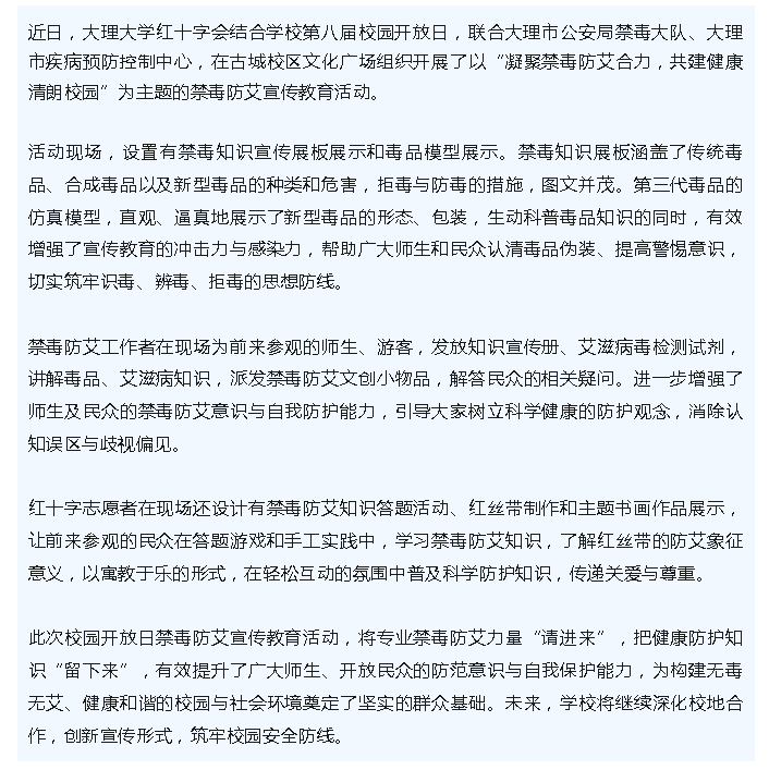 大理大学红十字会开展禁毒防艾宣传教育活动
