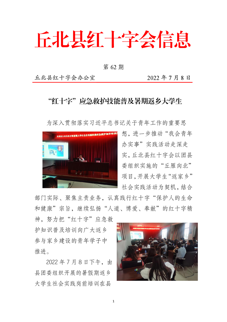 “红十字”应急救护技能普及暑期返乡大学生