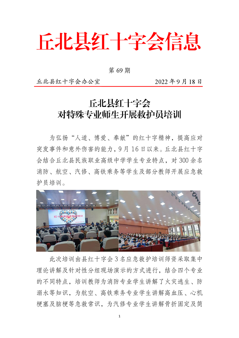 丘北县红十字会对特殊专业师生开展救护员培训