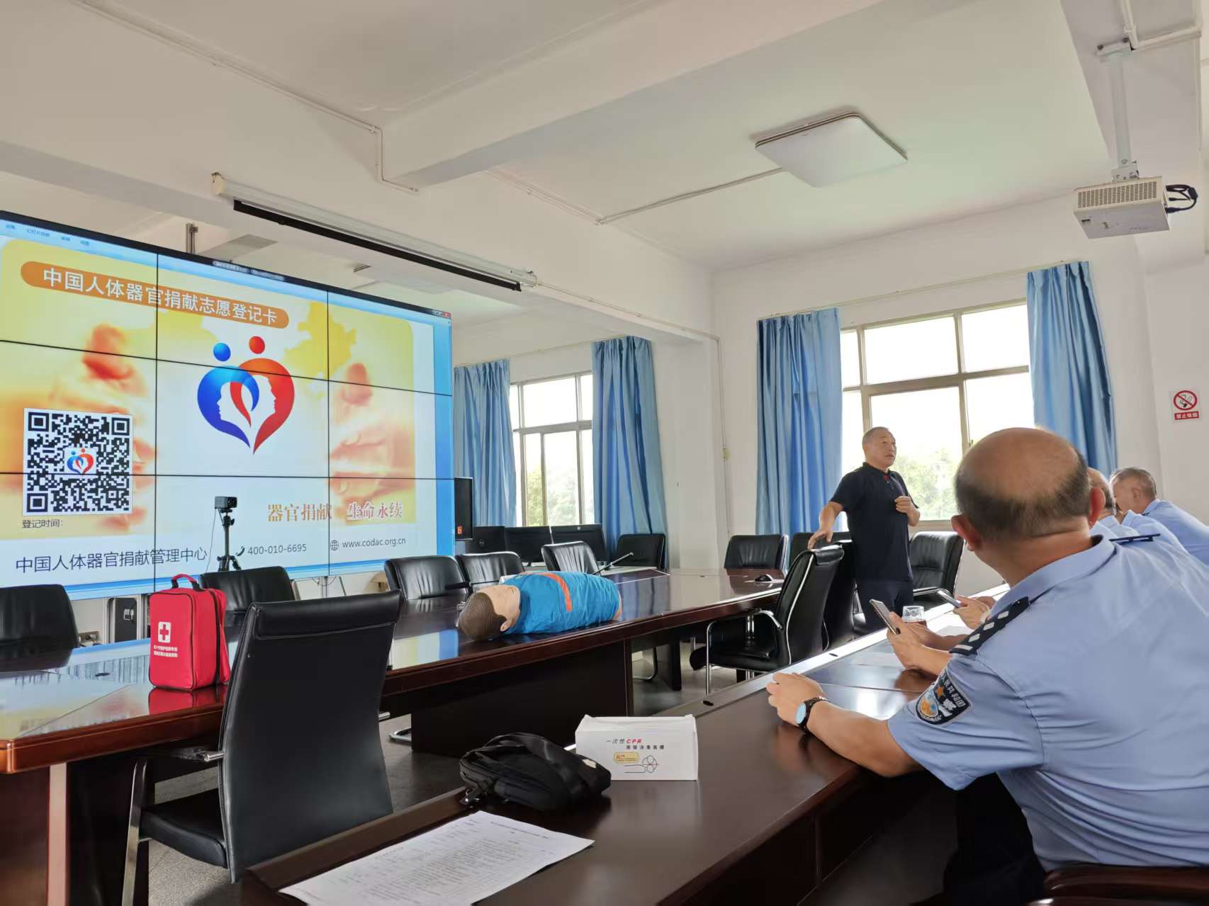 在县公安局及各派出所,红十字会工作人员结合公安干警日常接触的突发事件场景,详细讲解捐献流程与意义,现场演示登记操作。干警们积极参与,部分人员当场完成登记。