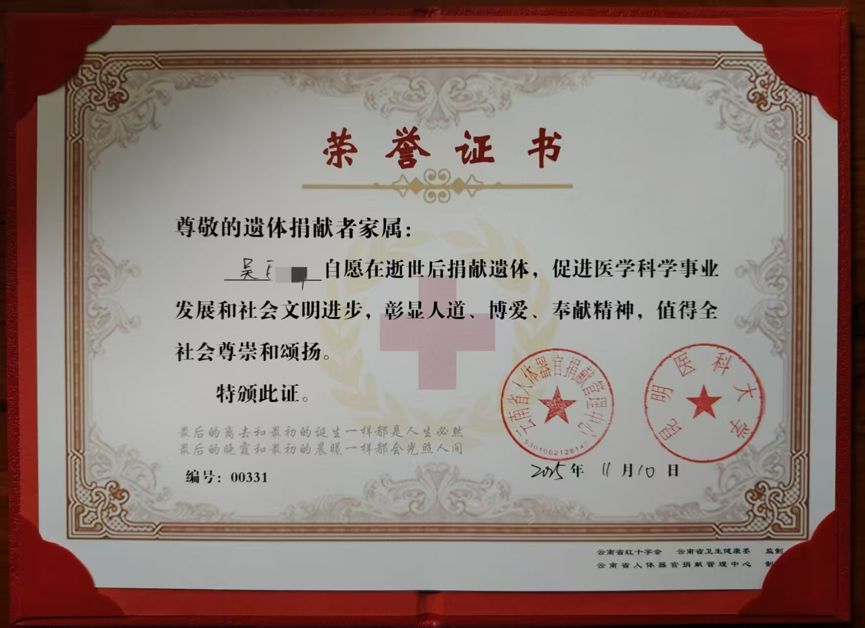 11月9日晚上,曲靖市第五人民医院举行了一场庄重的遗体告别仪式。第二天,吴安萍的遗体被送往昆明医科大学,用于医学教学、科学研究等,成为一名“大体老师”。