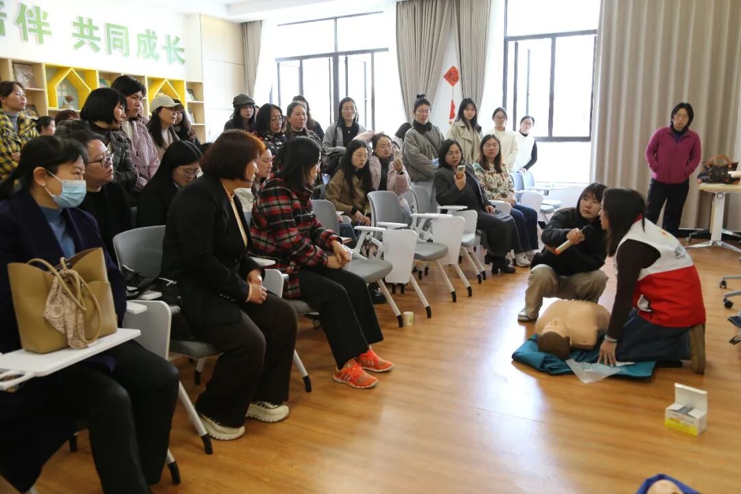 活动现场,红十字应急救护讲师围绕日常生活常见突发情况,细致讲解徒手心肺复苏、气道异物梗阻等实用急救知识,通过理论讲解、教具演示、实操指导相结合的方式,手把手教学,让参训人员直观掌握急救操作要点。