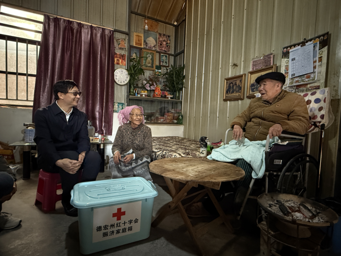 其间,慰问组率先深入勐卯街道办事处,走访慰问城市低保户杨雨庭、农村特困人员莫很、城市低保残疾人王诗敏等困难家庭。每到一户,慰问组都与群众促膝交谈,详细询问身体状况、家庭收支及生活保障情况,送上慰问物资并鼓励他们积极面对生活。在王诗敏家中,其母亲紧握慰问组人员的手动情致谢:“感谢红十字会的牵挂与帮扶,在我们最难的时候送来温暖,这份恩情我们记在心里。”