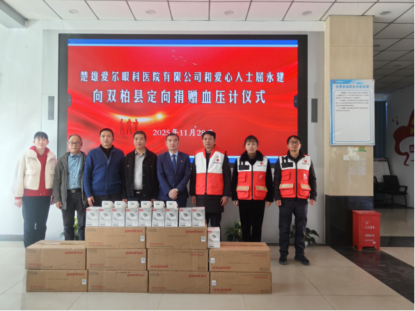 11月28日,楚雄爱尔眼科医院有限公司和爱心人士屈永建,向双柏县定向捐赠一批血压计,共计100台,用于双柏县村(社区)卫生室临床诊疗、公共卫生服务及免费健康体检等工作。捐赠方表示,关注到基层群众尤其是老年人、慢性病患者的健康监测需求,希望通过捐赠实用医疗设备,帮助基层医疗机构提升健康服务能力,让群众在家门口就能便捷开展血压检测。