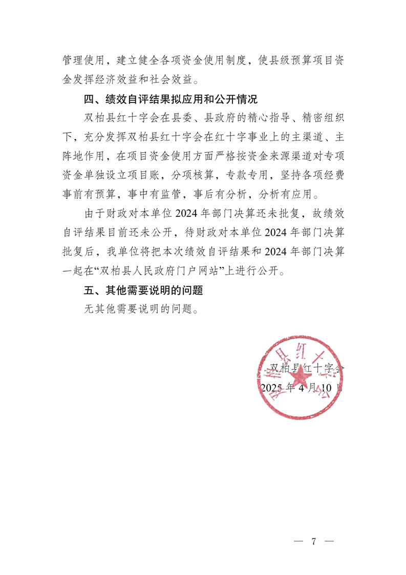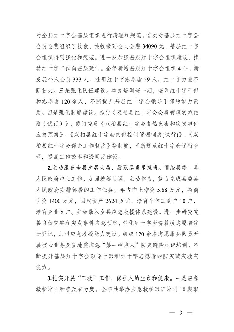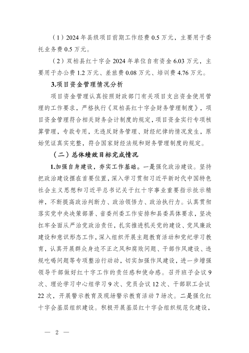 双柏县红十字会2024年部门整体和项目支出绩效自评报告