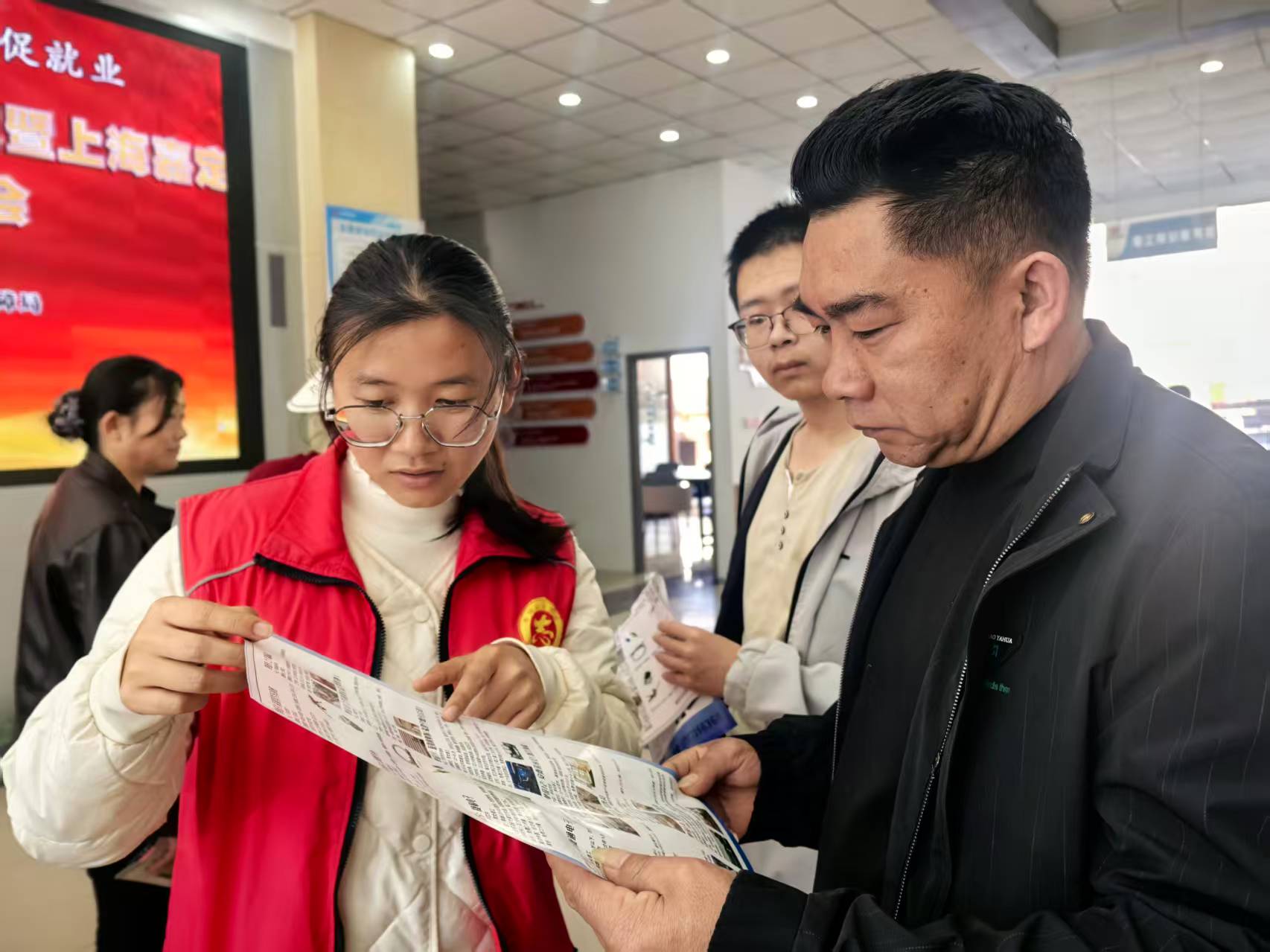 为确保活动精准高效,活动前期,县群团联盟充分发挥组织优势,提前启动多渠道预热宣传,通过社群推送、基层动员等方式,向返乡务工人员、高校毕业生、就业困难群体等重点对象精准推送招聘信息,有效提升了活动知晓度和参与度。活动现场创新服务模式,组织志愿者全程参与,一方面开展线上直播送岗,通过镜头带求职者“云逛招聘会”,实时传递岗位详情与企业动态,打破空间限制扩大服务覆盖面;另一方面提供现场就业指导、政策咨询等一站式服务,耐心解答求职者关于劳动合同、社保缴纳、技能培训等疑问,让求职之路更顺畅、更安心。