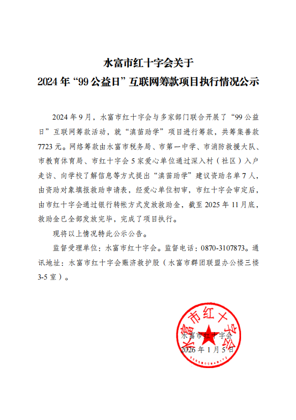 水富市红十字会关于 2024年“99公益日”互联网筹款项目执行情况公示