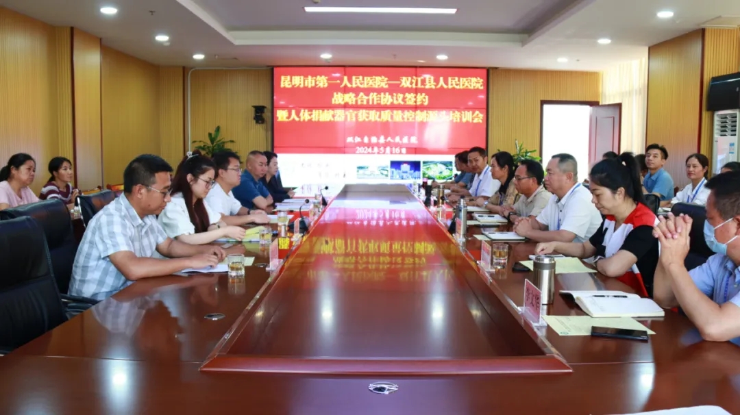 近日,昆明市第一人民医院到双江县冠名红十字医疗机构(双江县人民医院)举行战略合作协议签约暨人体捐献器官获取质量控制源头培训会议。