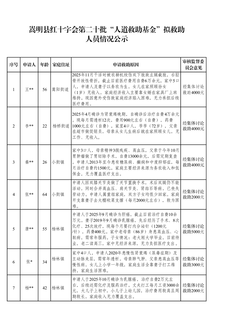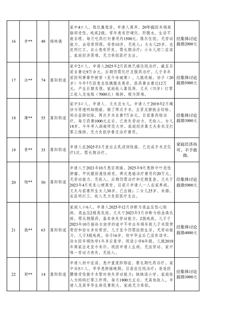 嵩明县第二十批"人道救助基金"拟救助人员名单公示