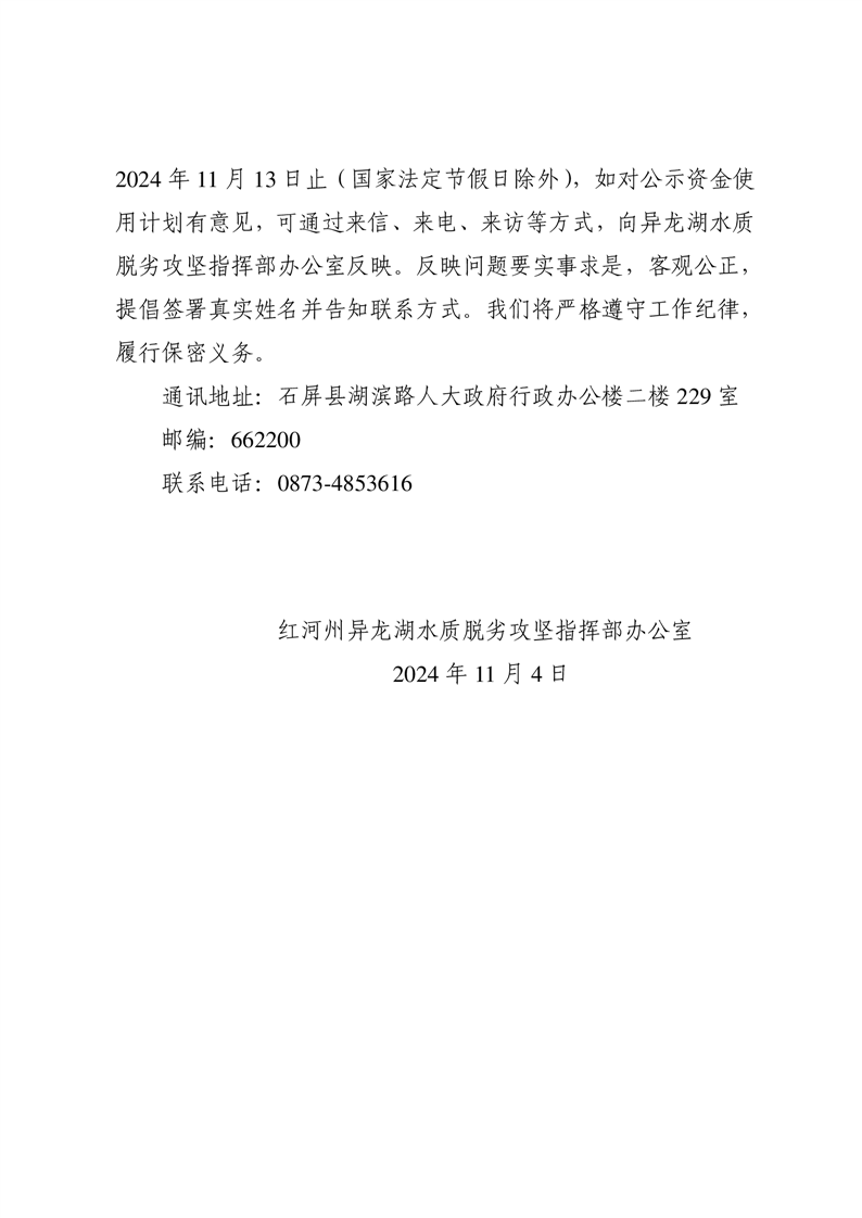 红河州异龙湖水质脱劣攻坚指挥部办公室关于2023年“5•8人道公益日——保护母亲湖”募集资金使用计划公示