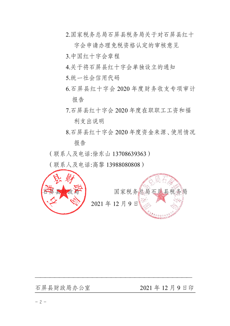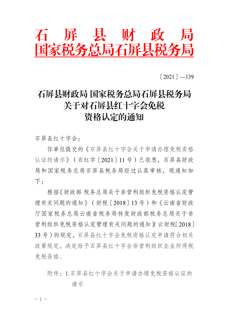 石屏县财政局 国家税务总局石屏县税务局关于对石屏县红十字会免税资格认定的通知