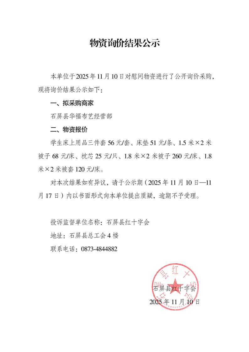 物资询价结果公示
