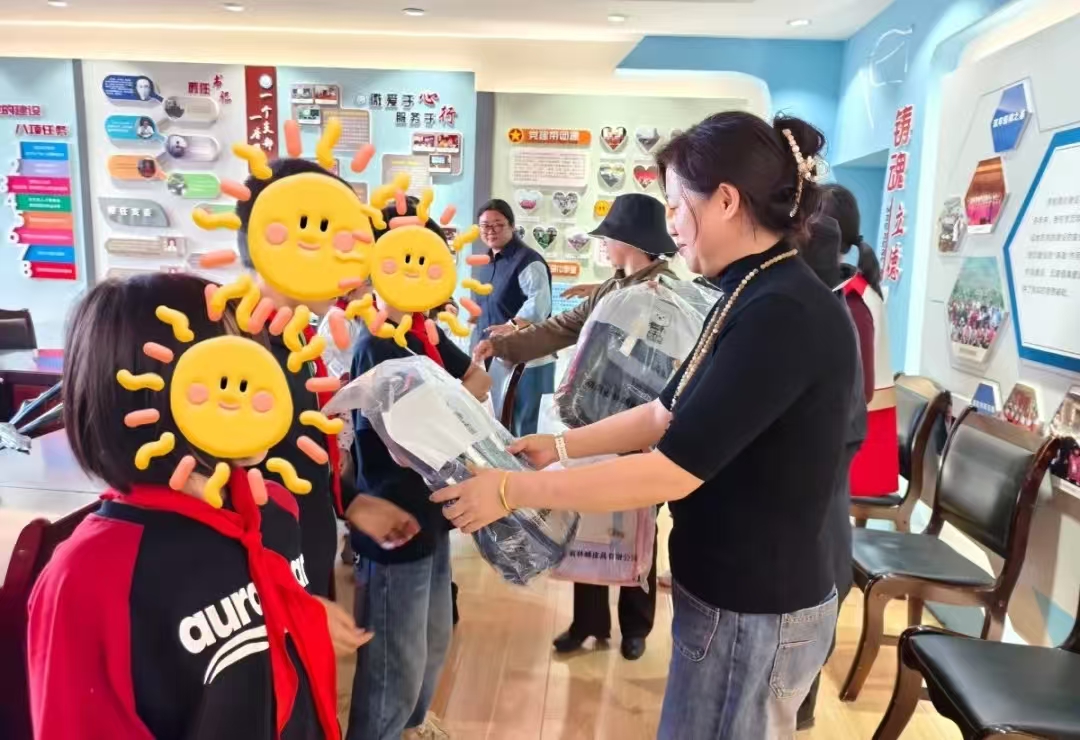 最暖心的环节当属物资捐赠——县妇联领导、县红十字会副会长、“爱心妈妈”们亲手为孩子们送上中秋礼物——一个装满了对孩子们牵挂的书包。