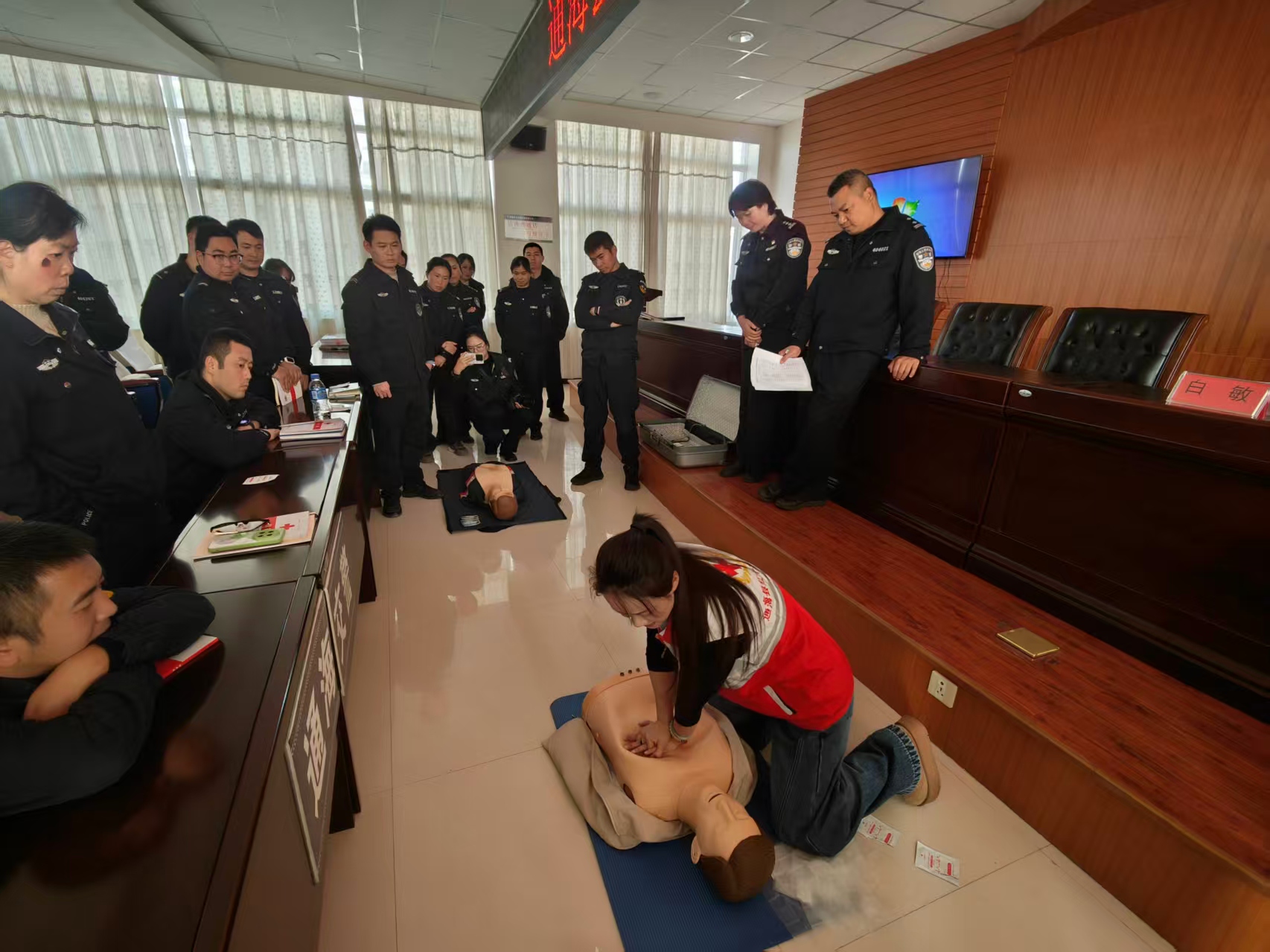 为切实提升公安民辅警在执勤执法、处置突发警情中的应急救护能力,有效应对各类心搏骤停等紧急情况,抢抓“黄金四分钟”救援时机,12月29日通海县红十字会走进县公安局,为全体参训民辅警开展心肺复苏(CPR)与自动体外除颤仪(AED)专项急救技能培训,着力锻造“懂急救、会急救、敢急救”的公安铁军,为群众生命安全保驾护航。