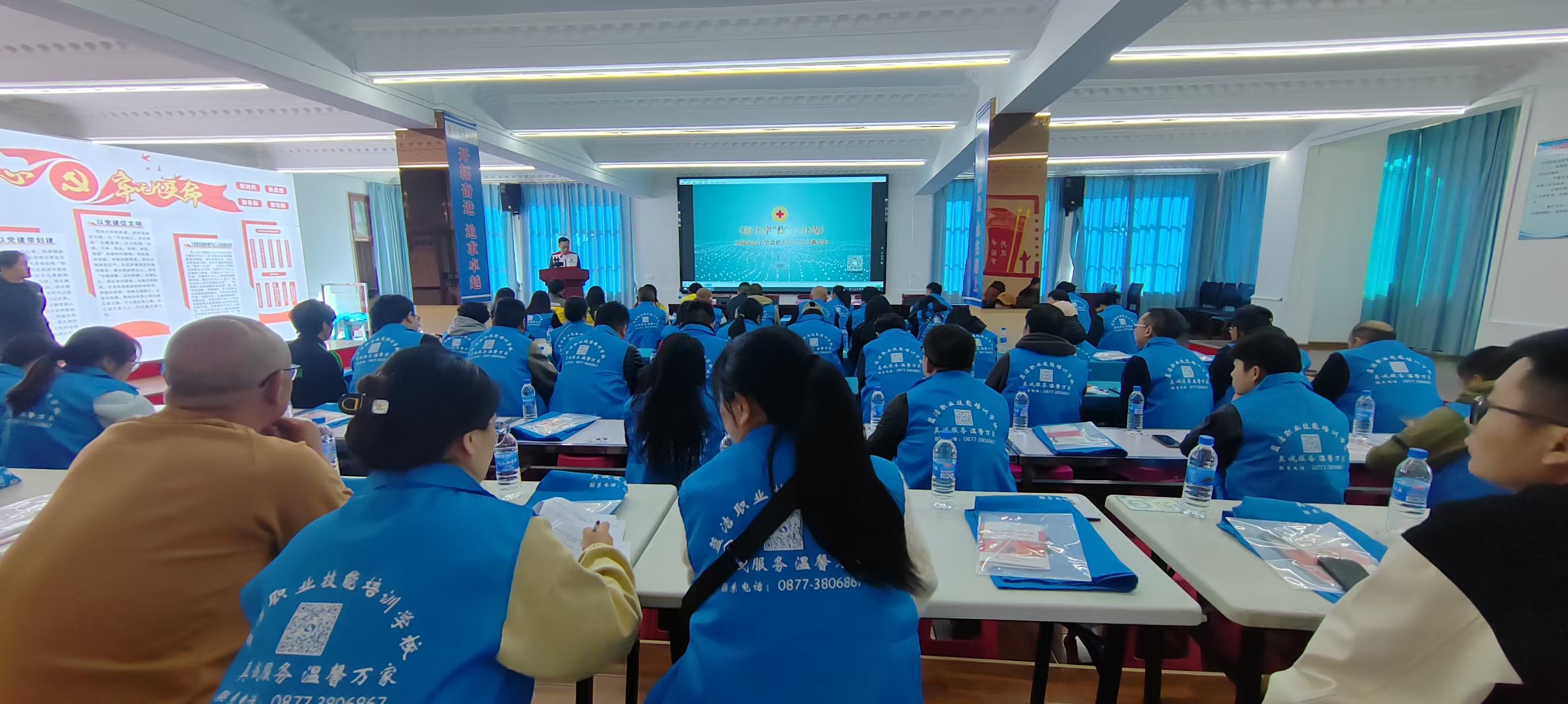 3月20日,通海县红十字会应通海县总工会工人俱乐部邀请,走进云南蓝洁职业技能培训学校,开展应急救护知识专题培训。本次培训由云南蓝洁职业技能培训学校承办,共70余名商铺租户、网约车司机、快递员及县总工会干部职工参加。