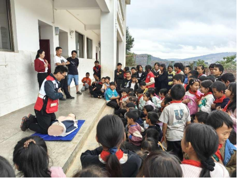 活动中,通过理论讲授、视频教学、实践操作练习等为同学们讲解并演示了海姆立克急救法、心肺复苏等急救技能,并开展防灾减灾、防溺水等知识宣传。来自狮高小学、滑坡小学、椅子甸、勒外小学的300余名教师和学生参加了培训。孩子们积极参与操作练习、踊跃提问、积极互动,培训老师示范操作,并现场指导孩子们进行实践操作,确保每个学生都基本掌握心肺复苏、海姆立克急救法等急救技能,现场培训效果良好,在活跃的氛围中学习急救技能,增强急救意识。