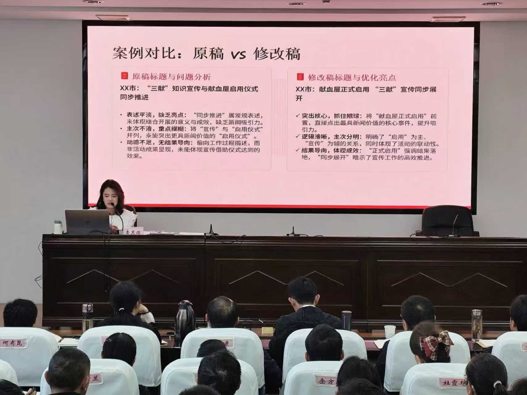 培训围绕信息写作常见问题与对策、照片拍摄常见问题与选图建议、透明度建设重点任务与推进路径三大板块展开。结合共性问题并展示优秀范文进行对比教学,通过真实案例和优秀模板,逐一拆解各县(市)在信息写作中存在的问题及优化路径;围绕“一张好照片胜过千言万语”的宣传理念,针对照片拍摄及选图,通过大量正反案例对比,生动讲解构图、光线、角度、人物神态等关键要素。对照《省级/地市级红十字会透明度评价指标体系》逐条分析,并围绕存在问题逐一进行剖析,提出改进措施。
