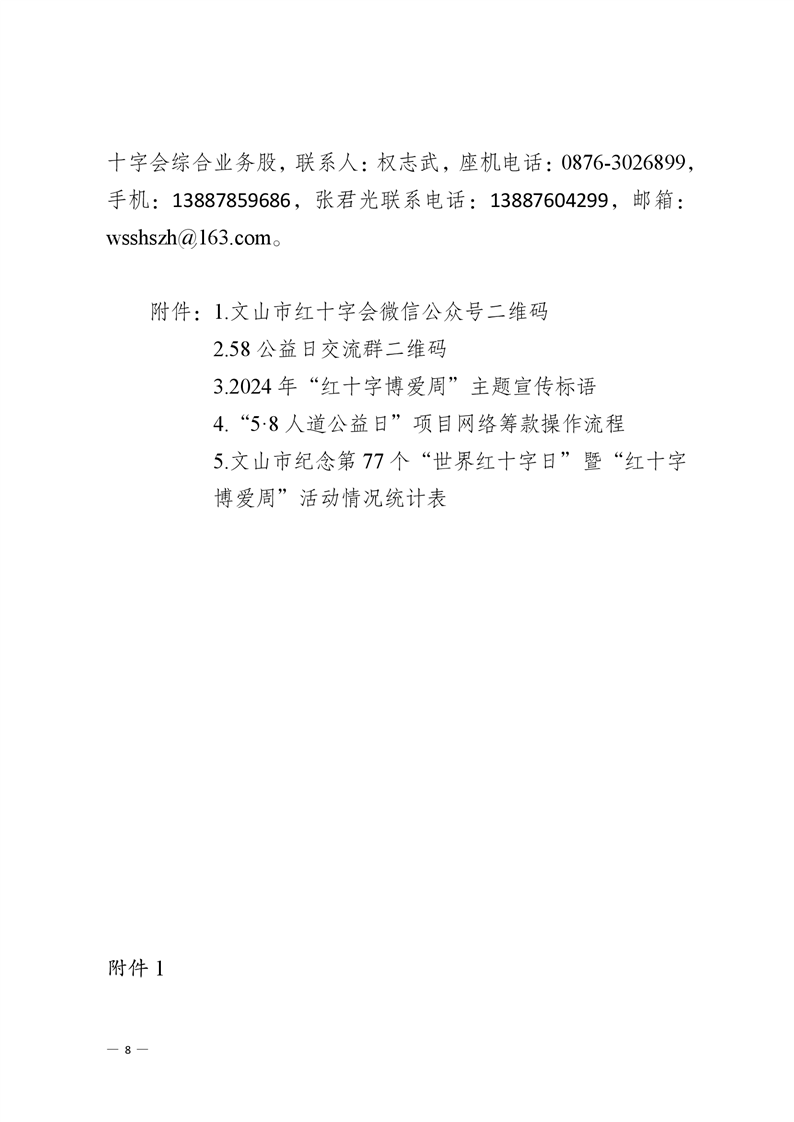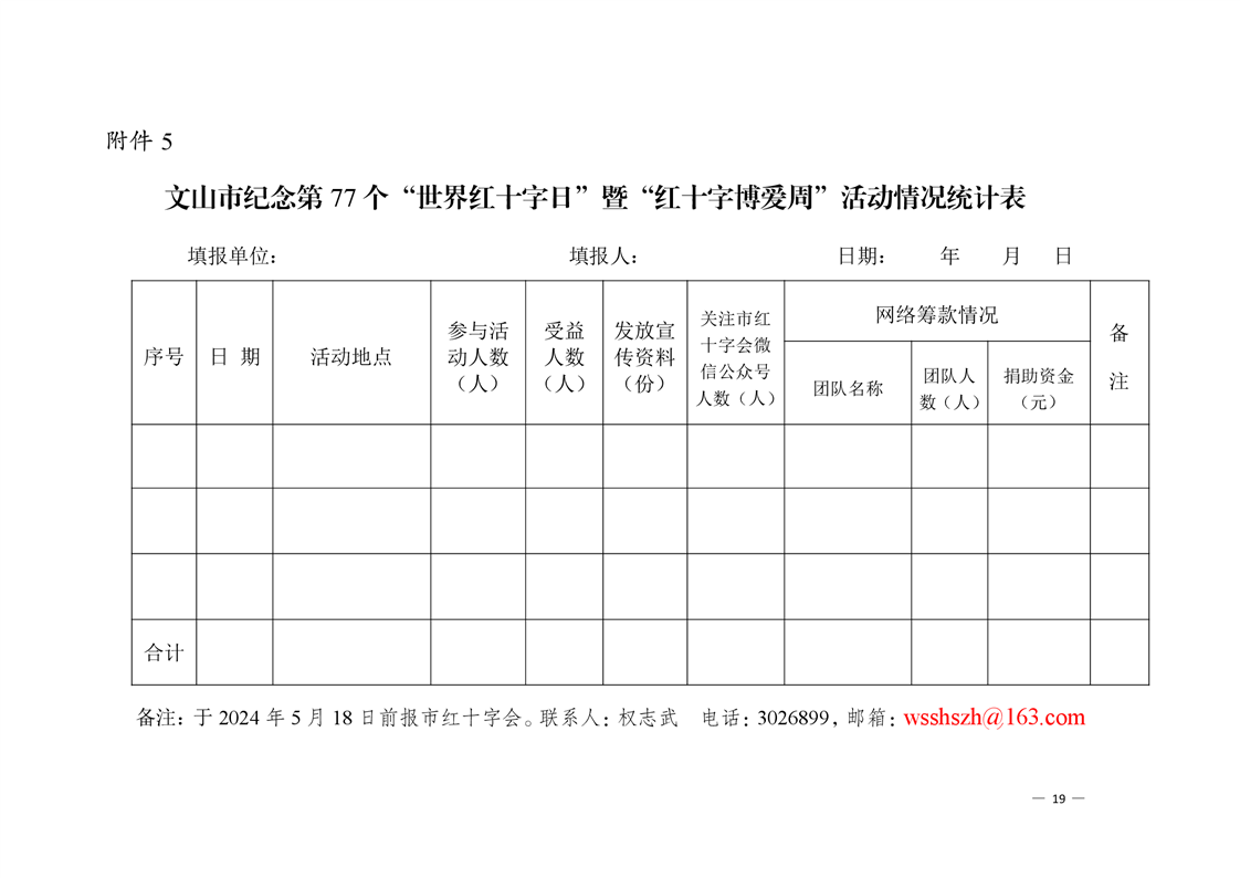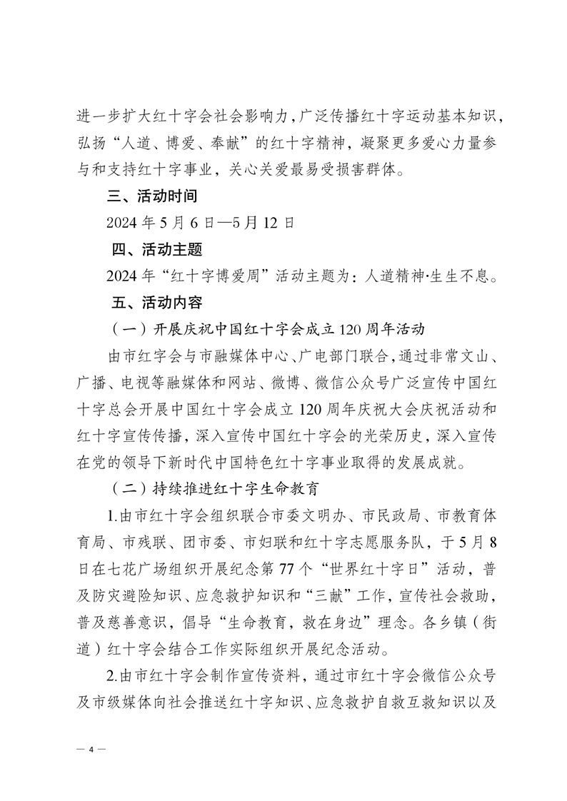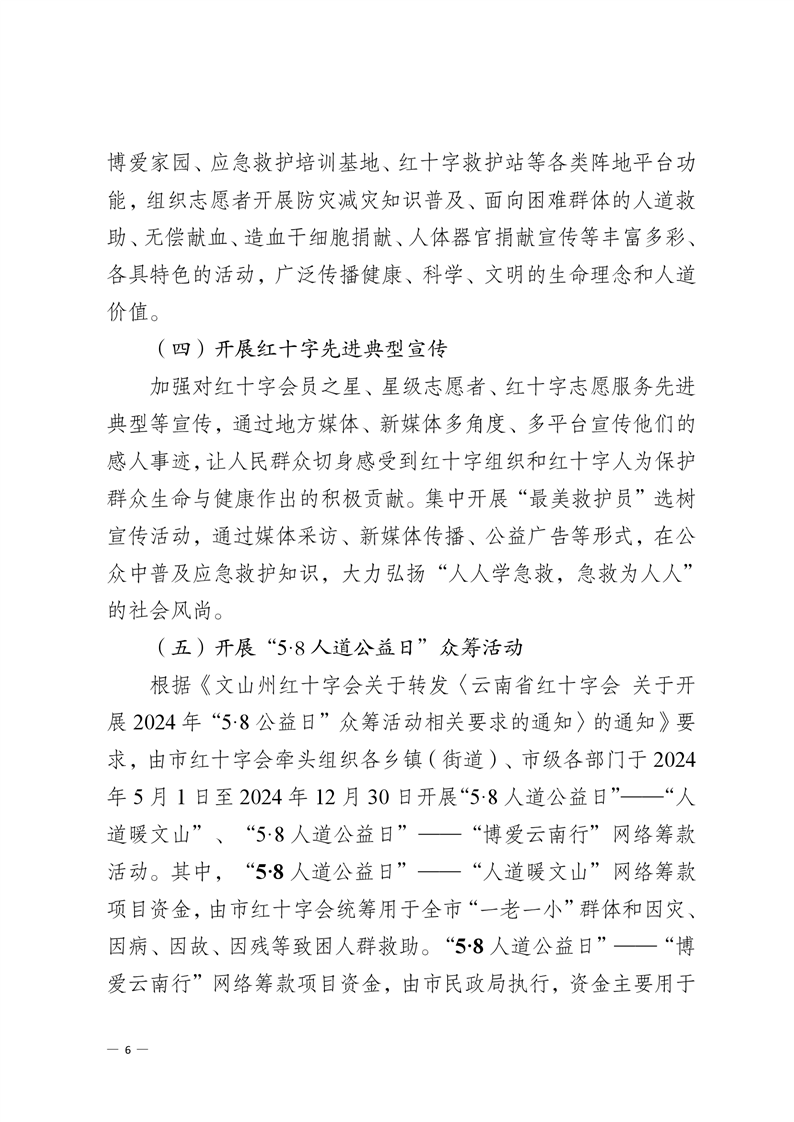 文山市红十字会 关于印发《文山市纪念第 77 个“世界红十字日” 暨“红十字博爱周”活动方案》的通知