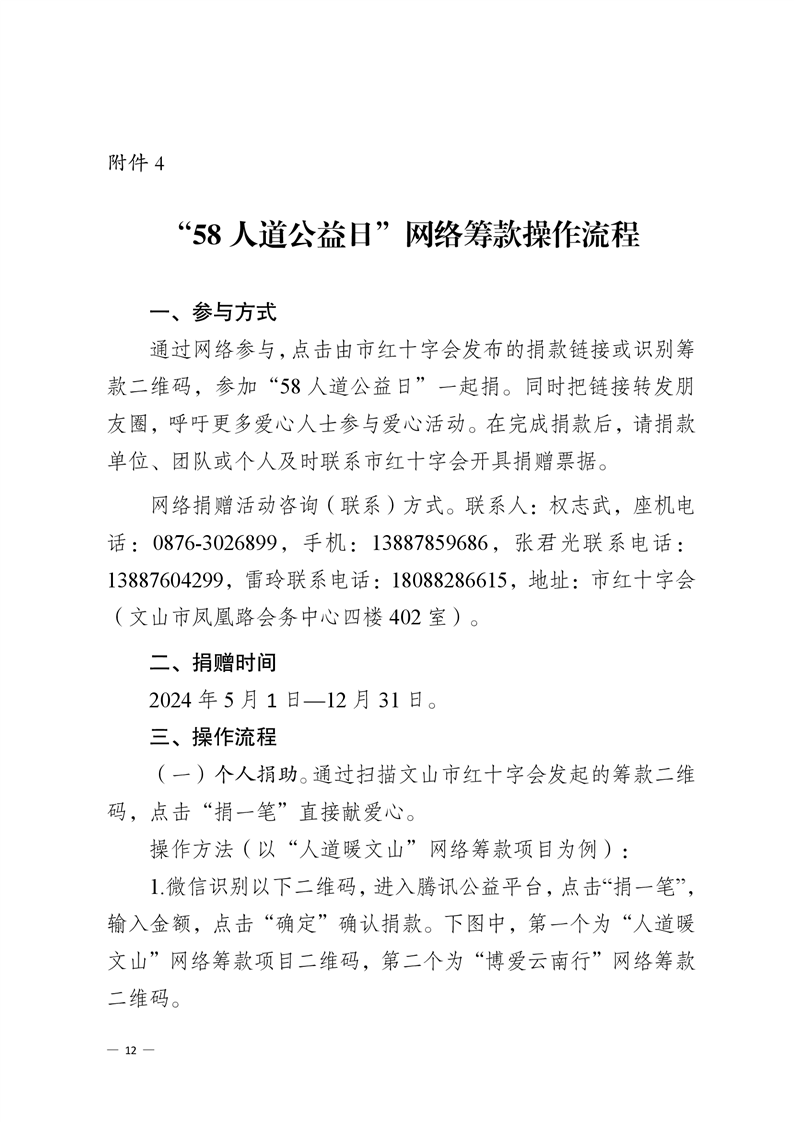 文山市 2024 年“58 人道公益日”网络筹款 倡议书