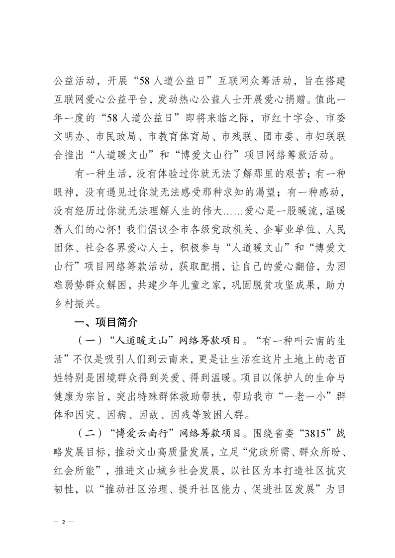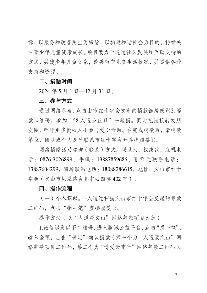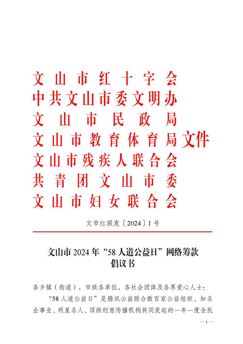 文山市 2024 年“58 人道公益日”网络筹款 倡议书