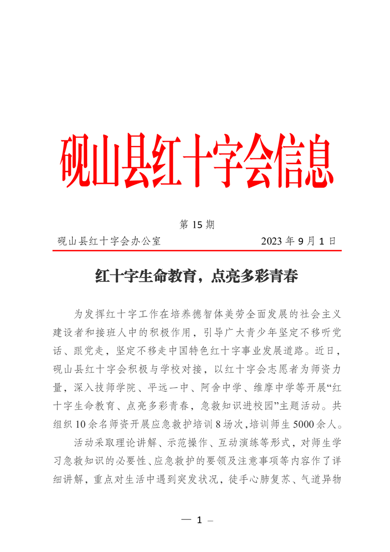 红十字生命教育 点亮多彩青春