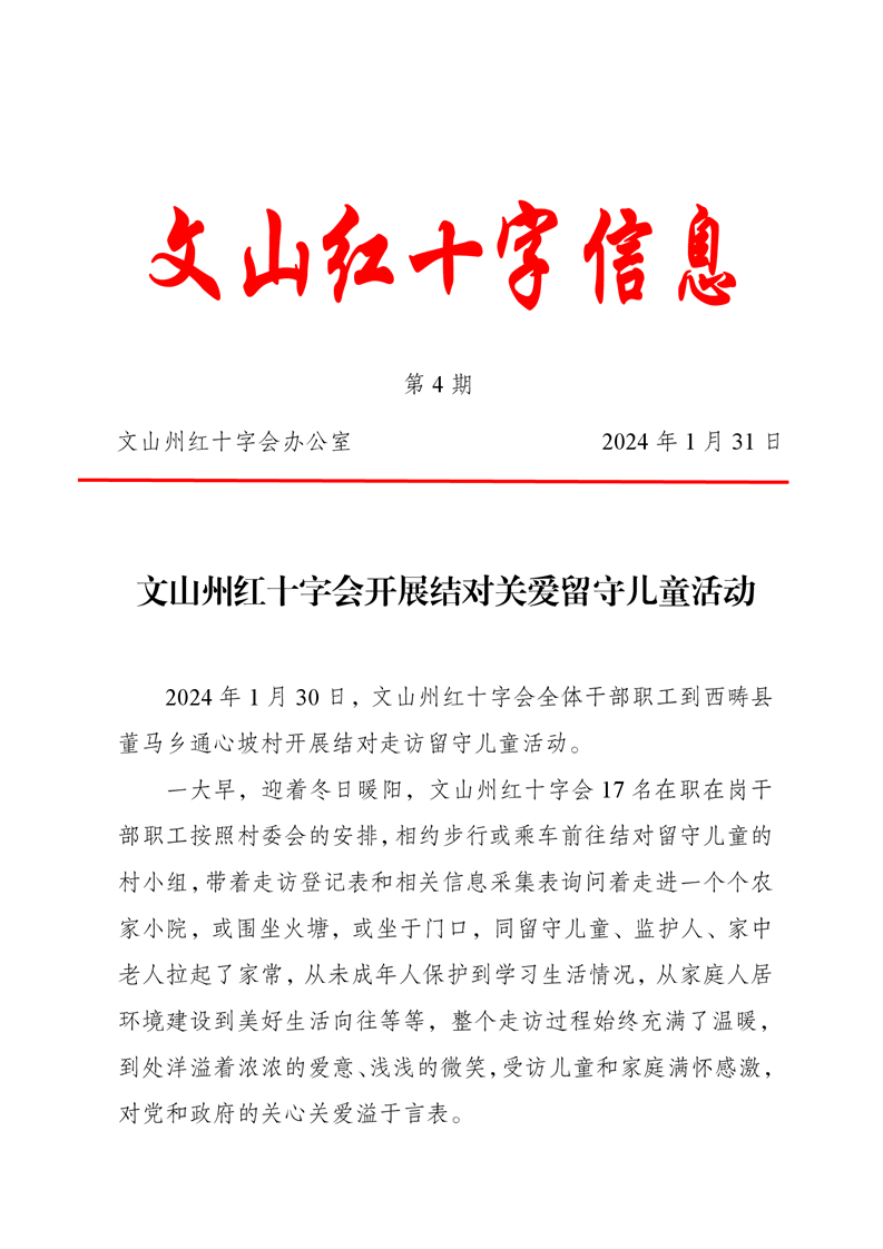 文山州红十字会“党建+红爱”结对关爱留守儿童